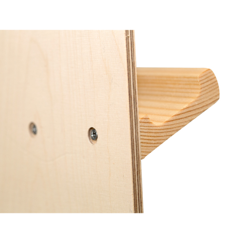 Ganz aus Holz gearbeitet (Rückenteil - Birkenholz / Ablagebretter - Kiefer).